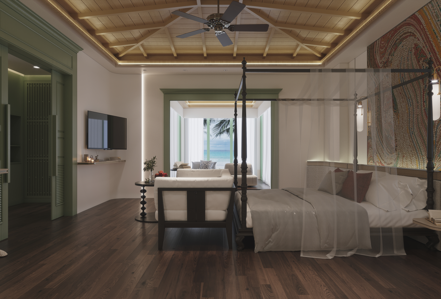 Set in lush surroundings, the Deluxe Villa invites you to unwind on a private terrace, soak in the spacious bath, or relax in a raised alcove ideal for families. Every detail is designed for calm, space, and seclusion.
