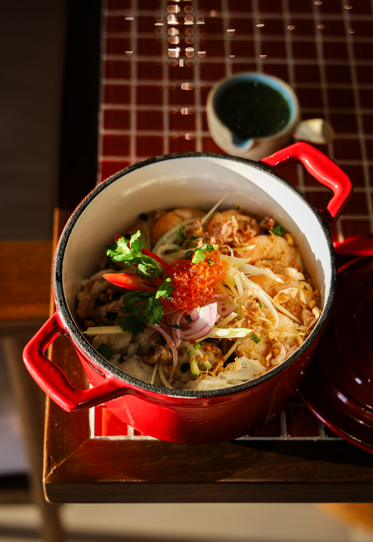 Inspired by Thailand’s iconic shrimp paste fried rice, La Solaya Rice is our signature interpretation of a classic local favorite. Fragrant rice is stir-fried with shrimp paste and topped with sweet crab meat, succulent prawns, and delicate salmon roe, bringing together rich coastal flavors in every bite.